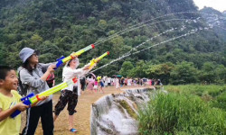 月亮湾:著名三湾之一,夹在东西两山之间,河道随山势迂回,形如一弯新月,故名月亮湾。月亮湾两侧峰峦叠嶂,原始森林密布,古木参天,林下河湾半岛状平台上是绿茸茸的大草坪
